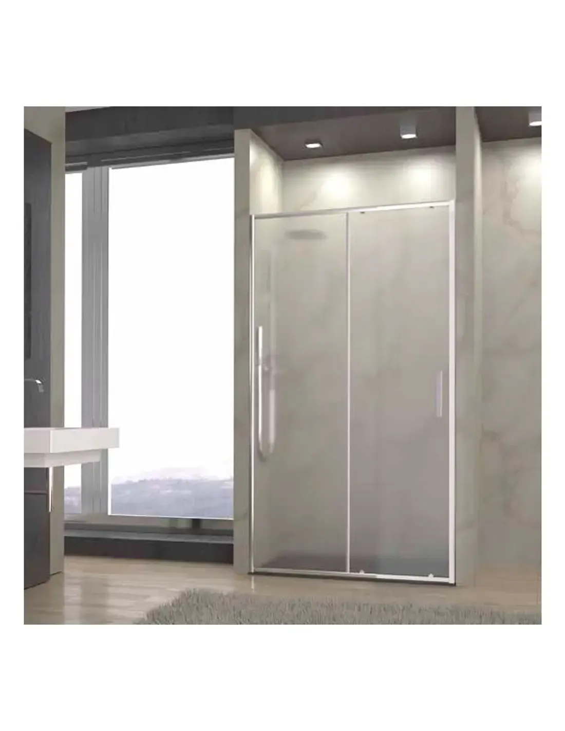 CIRE Suministros - Tu almacén online de Fontanería y Calefacción. UNO MAMPARA FRONTAL CRISTAL NEW GLASS, 1 FIJO + 1 PUERTA - 160CM